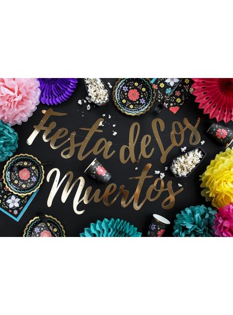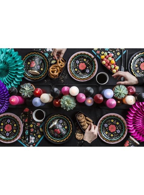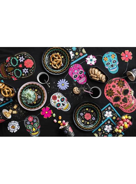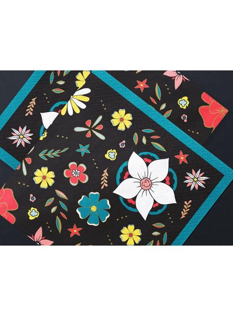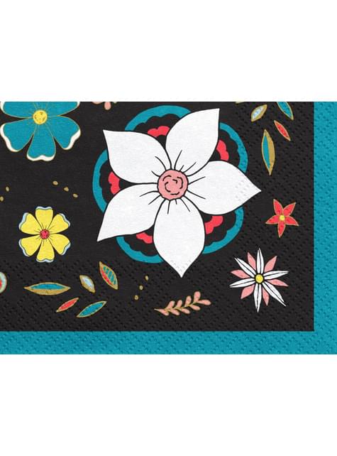 20 tovaglioli neri con stampa di fiori di carta (33x33 cm) - Dia de Los Muertos Collection