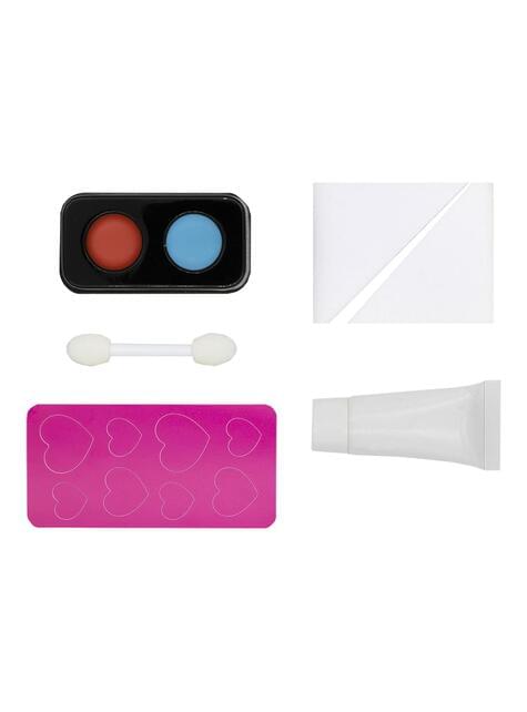 Include una palette di due colori (rosso e blu), base bianca in tubo, applicatore doppio, due spugne triangolari e tre stencil a forma di cuore per creare design unici. La sua consistenza cremosa consente un'applicazione facile e duratura, ottenendo un risultato professionale anche senza esperienza. Il blister decorato completano l'esperienza, evocando il glamour e il dramma del personaggio più temuto della storia.